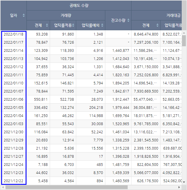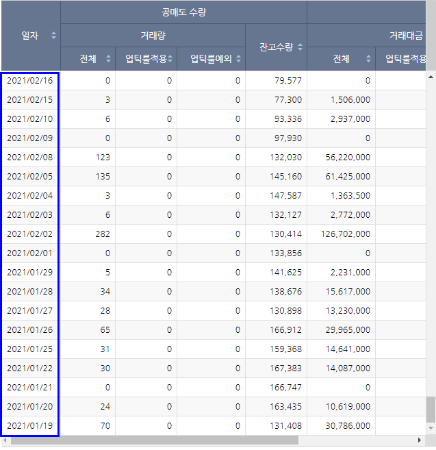 공매도 현황을 살펴보면 1년 전에 비해 엄청난 양의 공매도 포지션이 늘어난 것을 볼 수 있습니다.