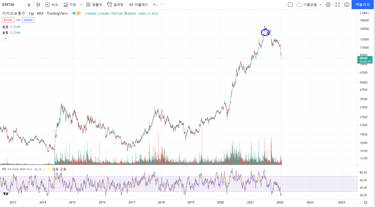 2021년 들어 카카오가 엄청난 폭등세를 보여주며 연초 대비 100%가 훌쩍 넘는 상승을 이뤄냈습니다.