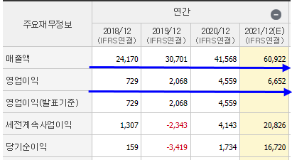 2018년부터 매출액을 보시면 2조 4천억원에서 매년 큰 성장을 하였습니다.