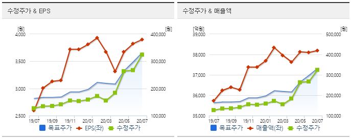 설사 국내에서만 큰 성공을 거두더라도 지금의 주가는 높지 않은 가격이라고 판단됩니다. 저의 기준에 따라 차트를 보면24만 원 ~ 30만 원대의 박스권에서 횡보가 나올 때 분할 매수를 들어가는 것이 추후 장기보유로 많은 수익을 올릴 수 있다고 생각합니다.