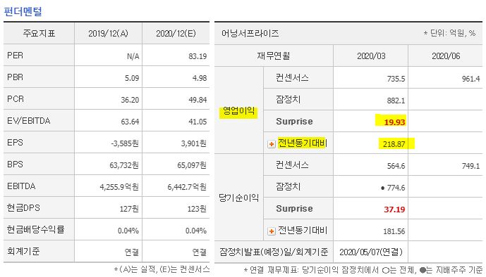 카카오는 가파르게 성장하고 있습니다. 2019년에 역대 최고의 매출을 기록하며 3조 원을 돌파한 바 있습니다. 이는 2018년에 비해 28%나 상승한 것으로, 영업이익 또한 2018년 대비 2019년에 183% 성장하였습니다. 그리고 2020년도에도 매출이 코로나 19의 경기 침체에도 불구하고 전년 동기 대비하여 23%가 늘어났고, 영업이익 또한 전년 동기 대비 219% 증가하였습니다. 2분기에는 1분기보다 더 큰 영업이익의 실적을 증권가에서 예상하고 있습니다.