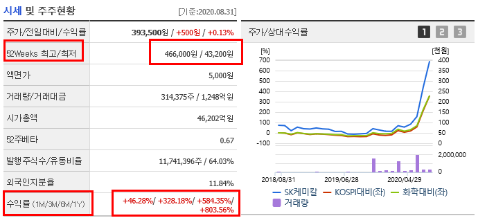 SK케미칼의 52주간 최고가를 보면 놀라 자빠질 정도입니다.