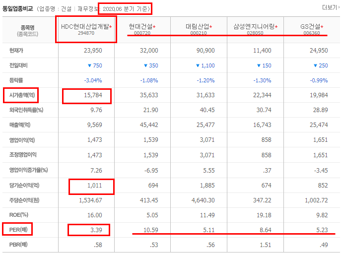 추후에 건설업종의 PER이 낮고 저평가된 기업들을 골라서 정보 공유해드리도록 하겠습니다.